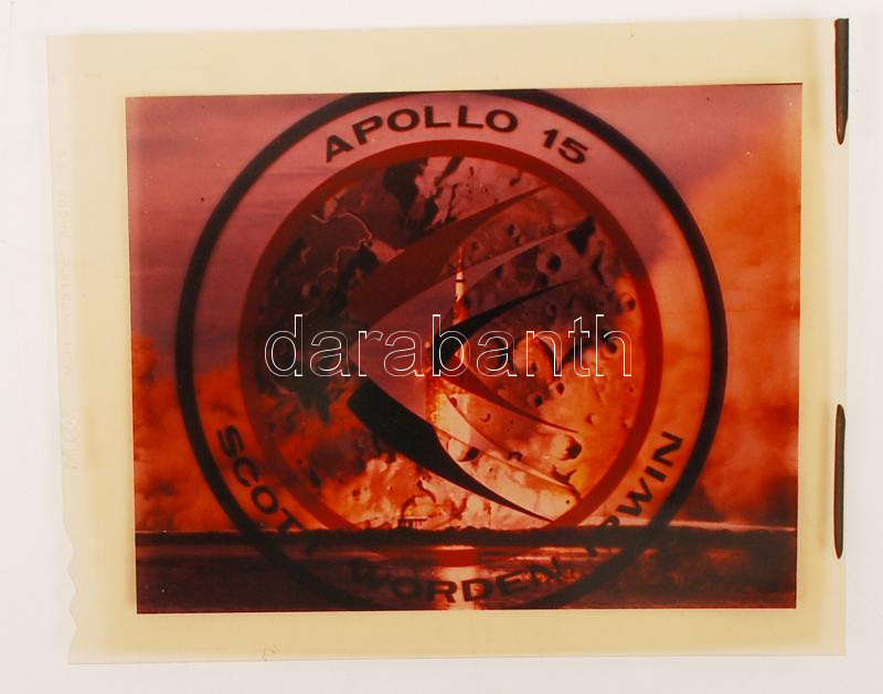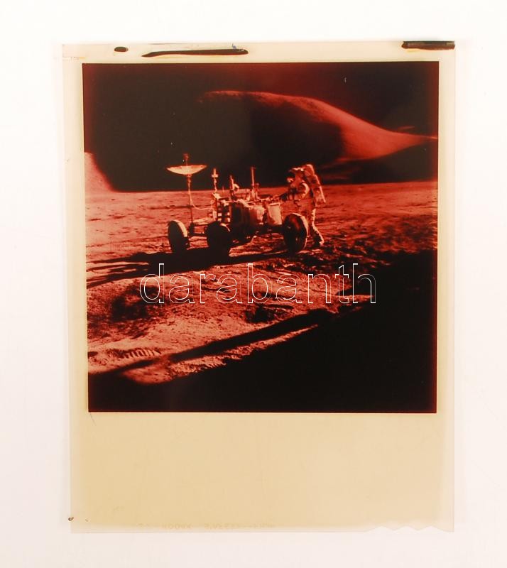 1971 Az Apollo 15 holdra szálló legénység utazásán készített fotók műanyag lemezen. 6 db 13x11 cm-es fotó, valószínűleg sajtófotók / 6 photos on plastic about the voyage of the Apollo 15 spaceship 13x11 cm