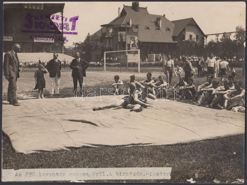 cca 1943 Leventék birkózó versenye Nemzeti Sport fotója. Pecséttel jel... https://www.darabanth.com/de/211-Fernauktion/211.0/Andere-Sammelgebiete/Foto~400322/cca-1943-Leventek-birkozo-versenye-Nemzeti-Sport-fotoja-Pecsettel-jelzett-19x14-cm~II873073
