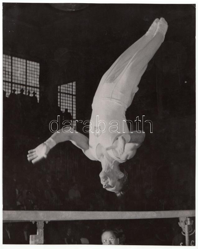 Beschreibung: cca 1960-1970 Baranyai László léghengere a korláton, feliratozott sportfotó, 22x18 cm