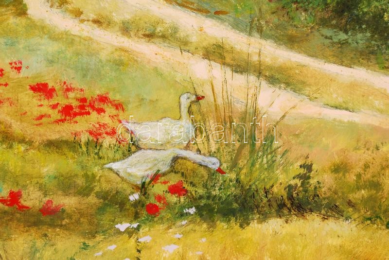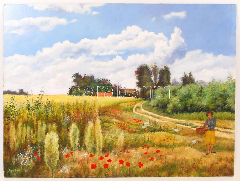 Beschreibung: Egri Tibor: Egy júliusi nap Pusztaszeren. Olaj, farost, jelzett, 60×80 cm