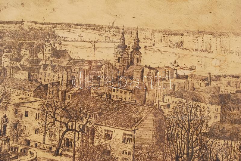 Beschreibung: Jelzés nélkül: Víziváros. Rézkarc, papír, üvegezett keretben, 28×39 cm