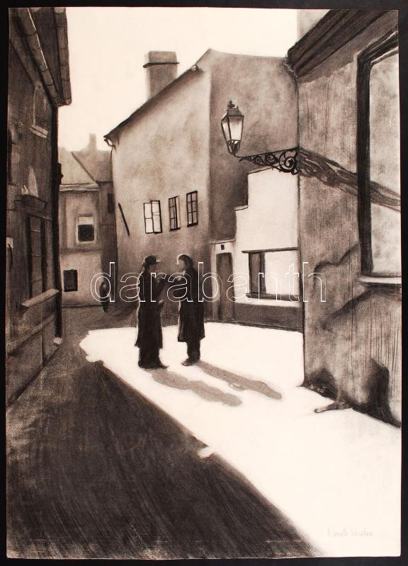 Beschreibung: Németh Krisztina (1994-): Terefere. Szén, papír, jelzett, 69×50 cm