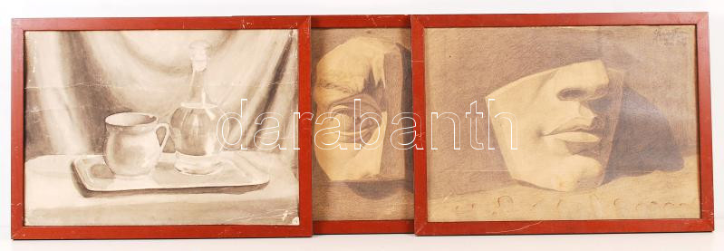 Olvashatatlan jelzéssel: 3 db tanulmány rajz, keretben, sérültek, 30×4... https://www.darabanth.com/de/211-Fernauktion/211.0/Andere-Sammelgebiete/Gemalde-und-Grafiken~400305/Olvashatatlan-jelzessel-3-db-tanulmany-rajz-keretben-serultek-30C39740-cm~II869806