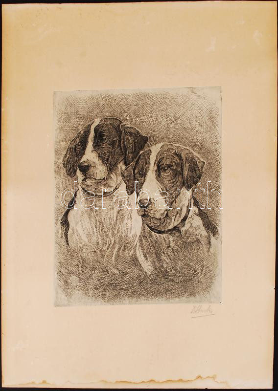 Olvashatatlan jelzéssel: Vadászkopók. Rézkarc, papír, 18×14 cm https://www.darabanth.com/de/211-Fernauktion/211.0/Andere-Sammelgebiete/Gemalde-und-Grafiken~400305/Olvashatatlan-jelzessel-Vadaszkopok-Rezkarc-papir-18C39714-cm~II874002