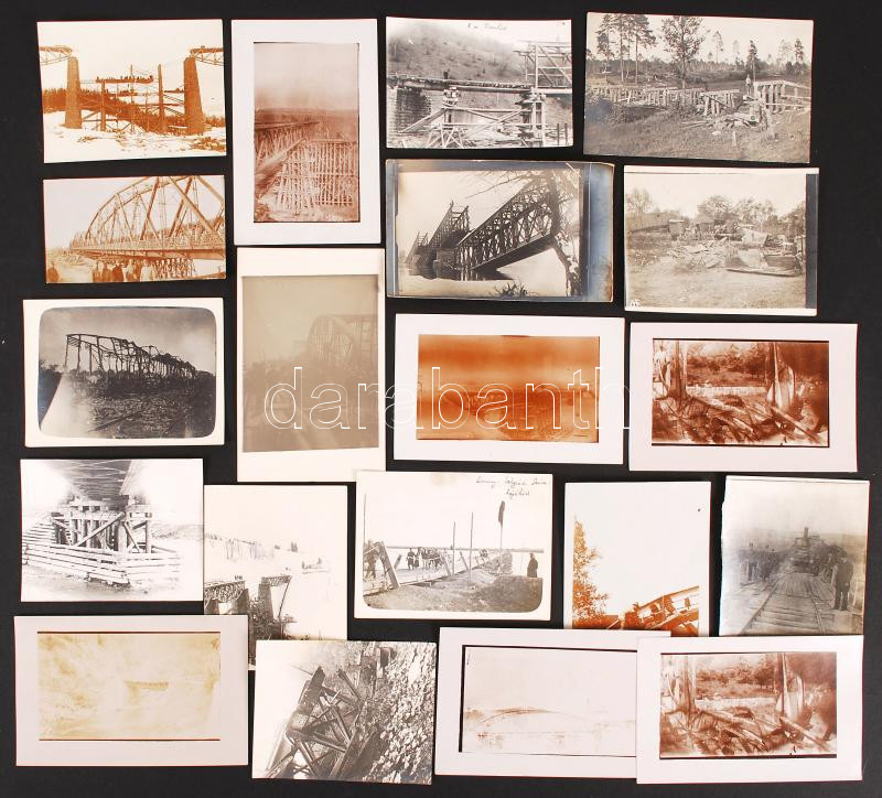 cca 1914-1918 I. világháborús katonai utász fotók. Hidak több különböző hadszíntérről. Részben feliratozott 20 db fotó. / Bridges in the World War I. photos mainly from the Serbian and Polish field 20 pcs