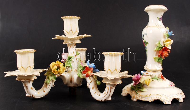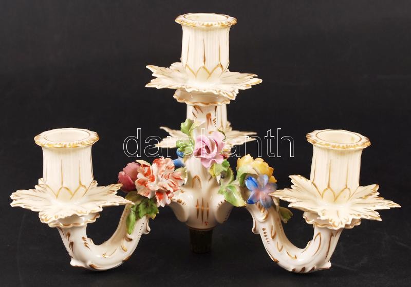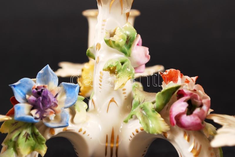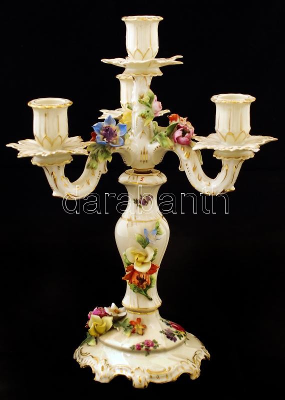 Beschreibung: Dresden gyertyatartó, kisebb lepattanásokkal, kézzel festett, jelzett, négy ágú, m:35 cm