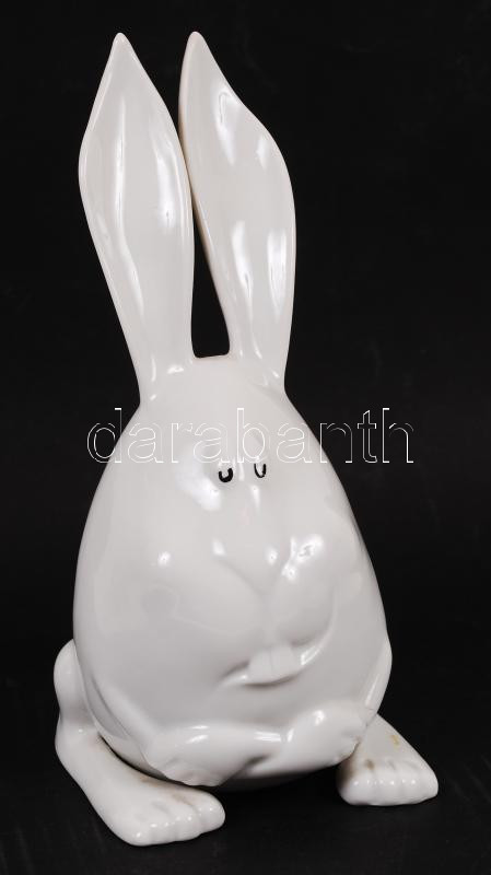 Hollóházi porcelán nyuszi, mázhibával, jelzett, m: 20 cm /
