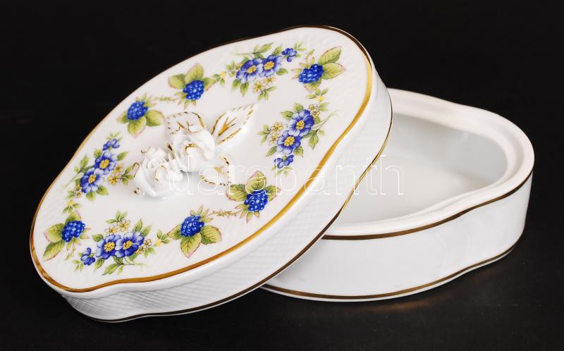 Beschreibung: Hollóházi rózsás bonbonier, matricás, jelzett, hibátlan, 16×11 cm /