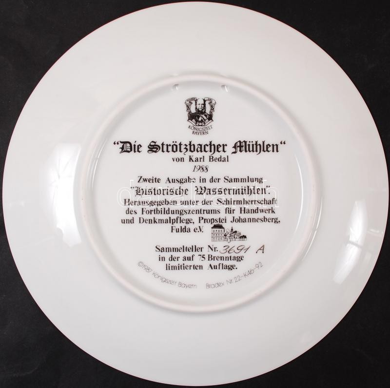 Történelmi vizimalmok jelzett gyűjtői porcelán tányér eredeti dobozába...