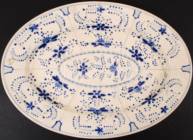 Beschreibung: Zsolnay húsos nagy tál, kézzel festett növényi motívumokkal, alján apró lepattanásokkal, jelzett (TJM), 31×42,5 cm