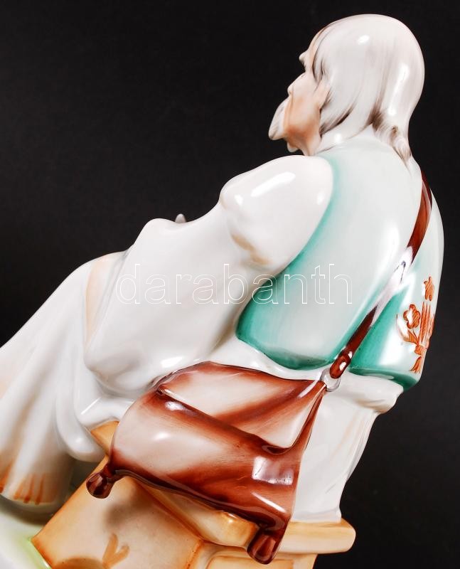 Hand painted Zsolnay porcelain figure of an old peasant, 32x24x20cm