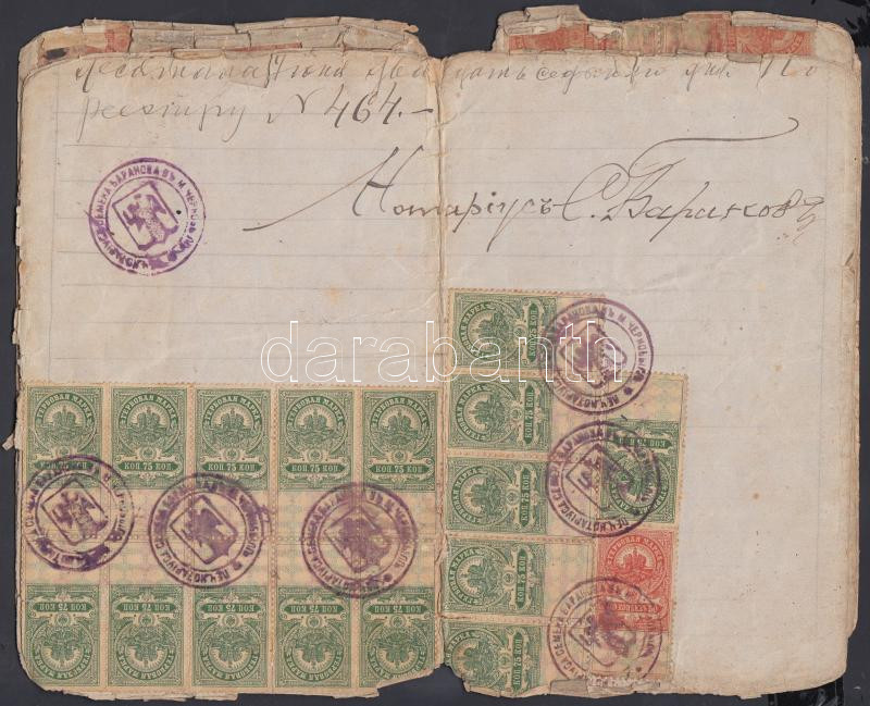 1918 Oroszország szerződés 89 okmánybélyeggel / Russia contract with 8... https://www.darabanth.com/de/211-Fernauktion/211.0/Andere-Sammelgebiete/Stempelmarken~400318/1918-Oroszorszag-szerzodes-89-okmanybelyeggel-Russia-contract-with-89-document-stamps~II875970