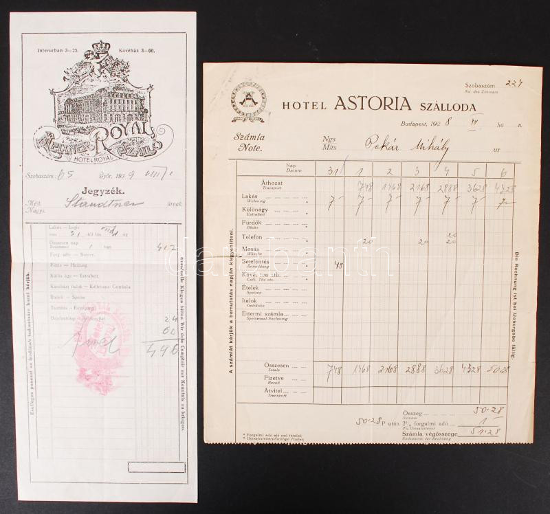 1928-1939 2 db hotel számla (Hotel Astoria Budapest, Meixner Royal Szá... https://www.darabanth.com/de/211-Fernauktion/211.0/Andere-Sammelgebiete/Werbungen~400346/1928-1939-2-db-hotel-szamla-Hotel-Astoria-Budapest-Meixner-Royal-Szallo~II874217