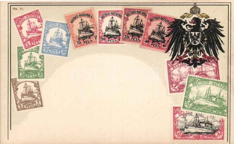 Stamps from German East Africa, coat of arms, litho, Ottmar Zieher https://www.darabanth.com/de/211-Fernauktion/211.0/Ansichtskarten/Briefmarken~800055/Stamps-from-German-East-Africa-coat-of-arms-litho-Ottmar-Zieher~II870684