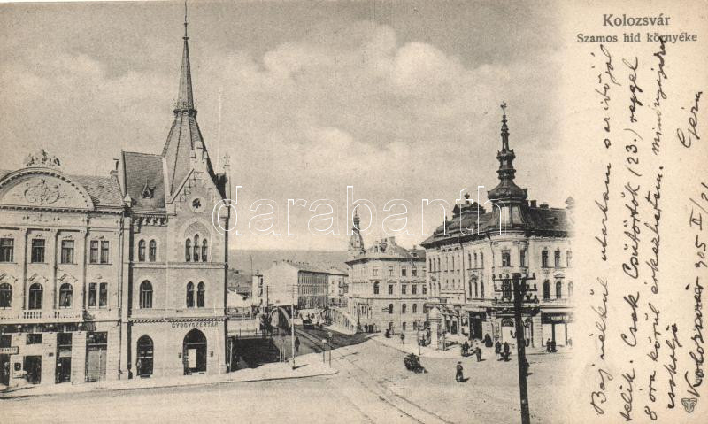 Kolozsvár, Szamos híd környéke, gyógyszertár / bridge, pharmacy https://www.darabanth.com/de/211-Fernauktion/211.0/Ansichtskarten/Siebenburgen~800007/Kolozsvar-Szamos-hid-kornyeke-gyogyszertar-bridge-pharmacy~II872713