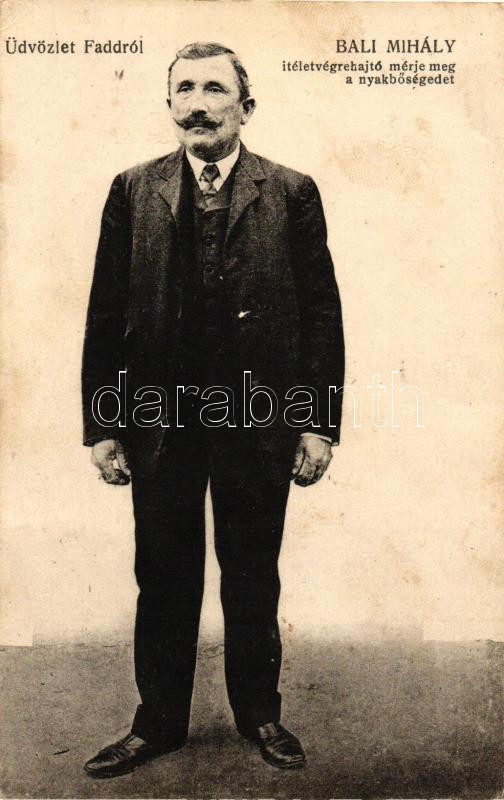Fadd, Bali Mihály ítéletvégrehajtó mérje meg a nyakbőségedet (EK) https://www.darabanth.com/de/211-Fernauktion/211.0/Ansichtskarten/Ungarn~800006/Fadd-Bali-Mihaly-iteletvegrehajto-merje-meg-a-nyakbosegedet-EK~II875540