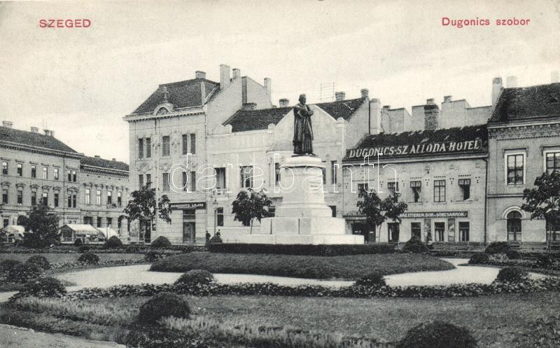 Szeged, Dugonics szobor, Dugonics szálloda, étterem, bor és sörcsarnok... https://www.darabanth.com/de/211-Fernauktion/211.0/Ansichtskarten/Ungarn~800006/Szeged-Dugonics-szobor-Dugonics-szalloda-etterem-bor-es-sorcsarnok-Moskovitz-Lajos-uzlete-~II875186