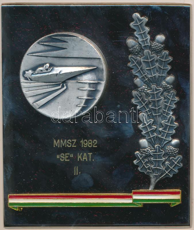 Beschreibung: ~1980. "MALÉV Törzsgárda" 30 év után járó névre szóló fém plakett tokban (104x90mm) + 1982. "MMSZ SE KAT. II" fém plakett tokban (104x90mm) T:1
