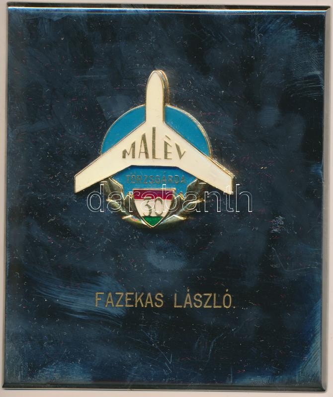 ~1980. "MALÉV Törzsgárda" 30 év után járó névre szóló fém plakett tokb... https://www.darabanth.com/de/211-Fernauktion/211.0/Numismatik/Ungarische-Edelmetall-Gedenkmunzen~600009/7E1980-MALEV-Torzsgarda-30-ev-utan-jaro-nevre-szolo-fem-plakett-tokban-104x90mm-plus-198~II872347