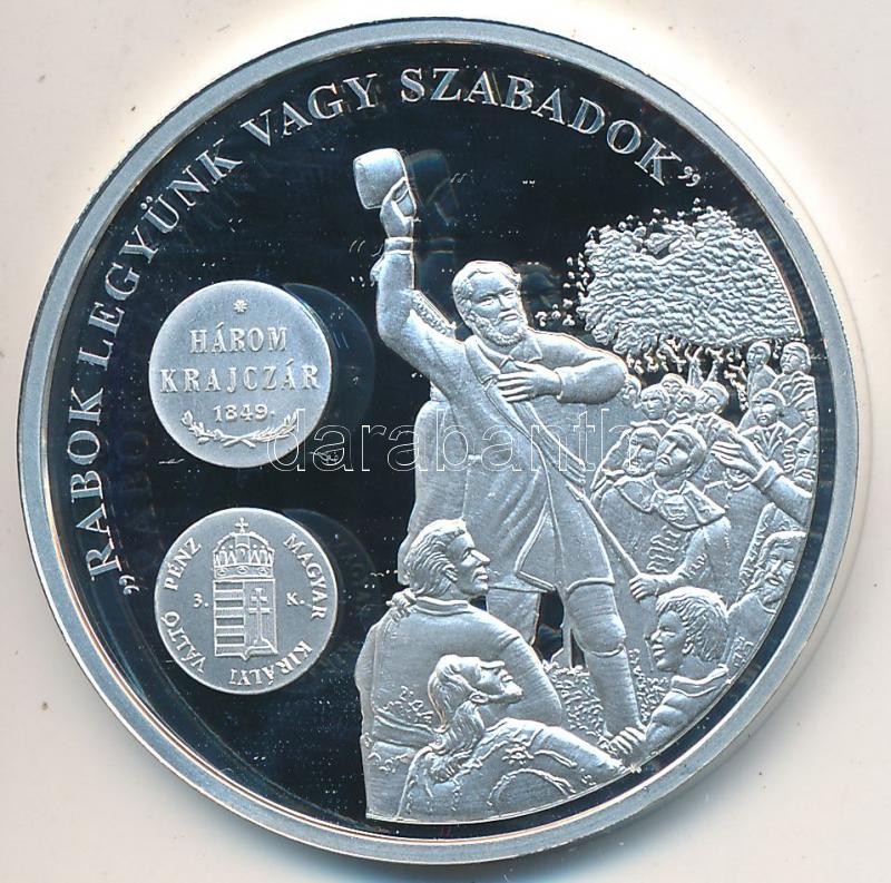 Beschreibung: DN "A magyar pénz krónikája - Rabok legyünk vagy szabadok" Ag emlékérem (20g/0.999/38,61mm) T:PP Tanúsítvánnyal
