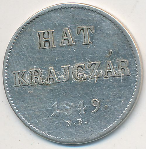 1849NB 6Kr Ag T:2- Tanúsítvánnyal https://www.darabanth.com/de/211-Fernauktion/211.0/Numismatik/Ungarische-Munzen~600008/1849NB-6Kr-Ag-T2-Tanusitvannyal~II875795