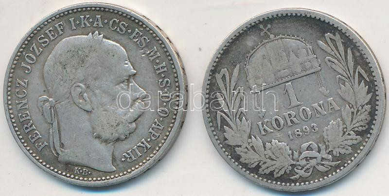Beschreibung: 1893. 1K Ag "Ferenc József" (2x) T:3