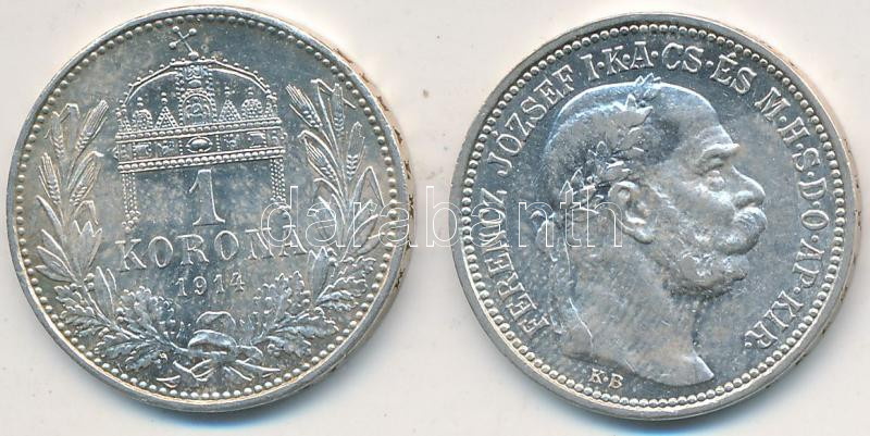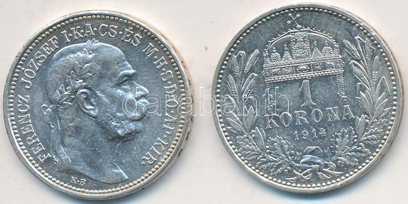 1914. 1K Ag "Ferenc József" (2x) T:2 https://www.darabanth.com/de/211-Fernauktion/211.0/Numismatik/Ungarische-Munzen~600008/1914-1K-Ag-Ferenc-Jozsef-2x-T2~II873422