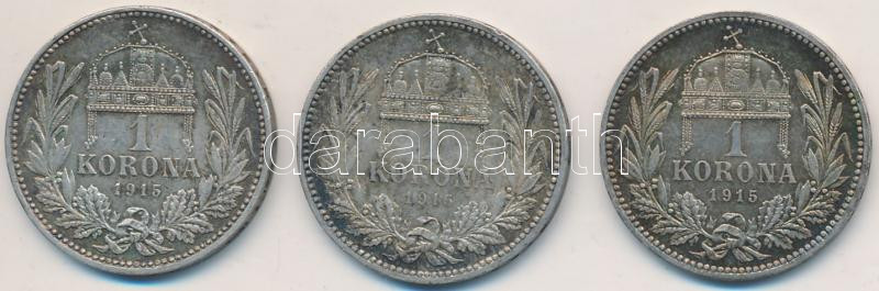 1915. 1K Ag "Ferenc József" (3x) T:2,2- https://www.darabanth.com/de/211-Fernauktion/211.0/Numismatik/Ungarische-Munzen~600008/1915-1K-Ag-Ferenc-Jozsef-3x-T2-2-~II873454