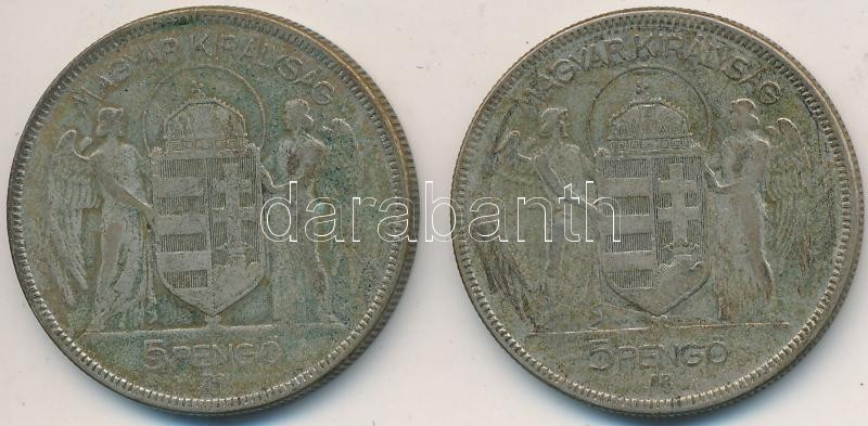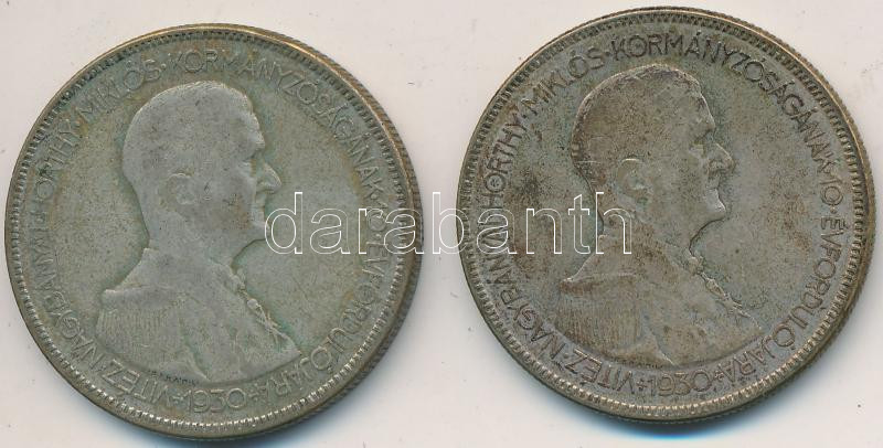 Beschreibung: 1930. 5P Ag "Horthy-jobbra" (2x) T:3