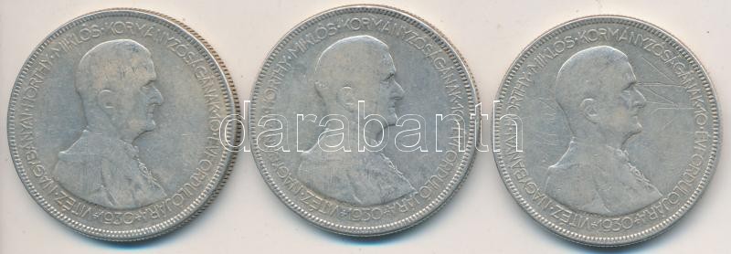 Beschreibung: 1930. 5P Ag "Horthy-jobbra" (3x) T:3
