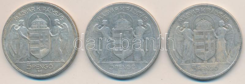 Beschreibung: 1930. 5P Ag "Horthy-jobbra" (3x) T:3