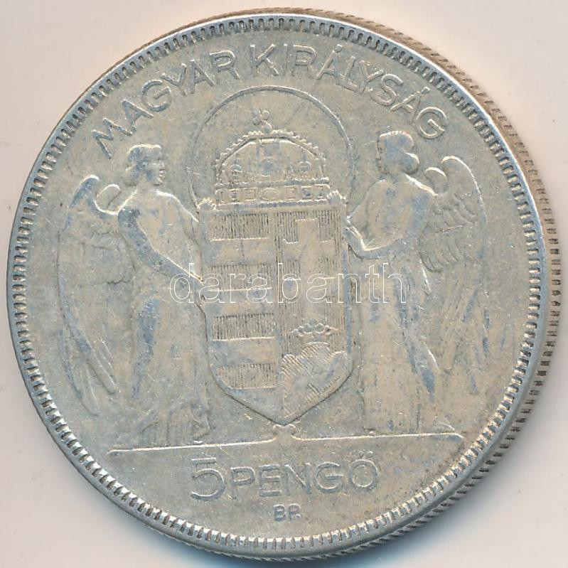 Beschreibung: 1930. 5P Ag "Horthy-jobbra" T:3