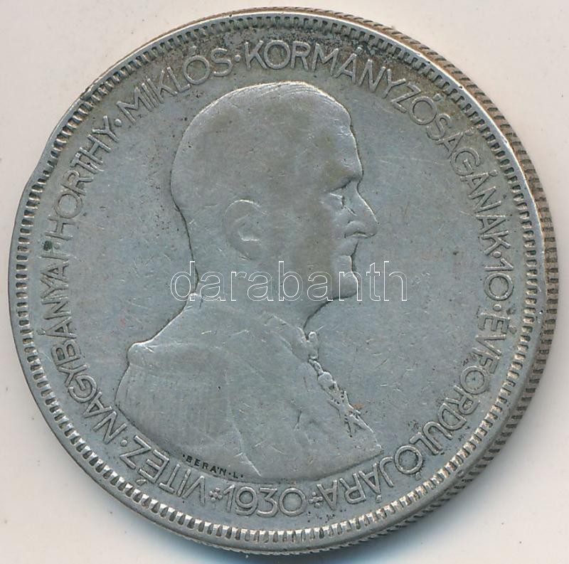 Beschreibung: 1930. 5P Ag "Horthy-jobbra" T:3