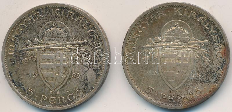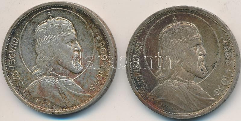 Beschreibung: 1938. 5P Ag "Szent István" (2x) T:2-