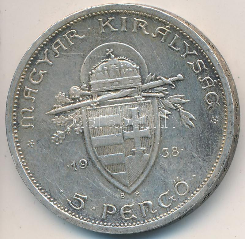 Adamo P8.1 https://www.darabanth.com/de/211-Fernauktion/211.0/Numismatik/Ungarische-Munzen~600008/1938-5P-Ag-Szent-Istvan-T2--3Cbr3EAdamo-P81~II871892