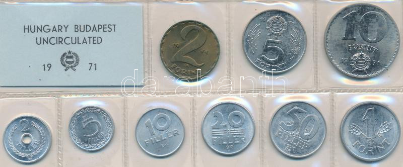 1971. 2f-10Ft 9db klf érmés forgalmi sor fóliatokban T:1 https://www.darabanth.com/de/211-Fernauktion/211.0/Numismatik/Ungarische-Munzen~600008/1971-2f-10Ft-9db-klf-ermes-forgalmi-sor-foliatokban-T1~II869559