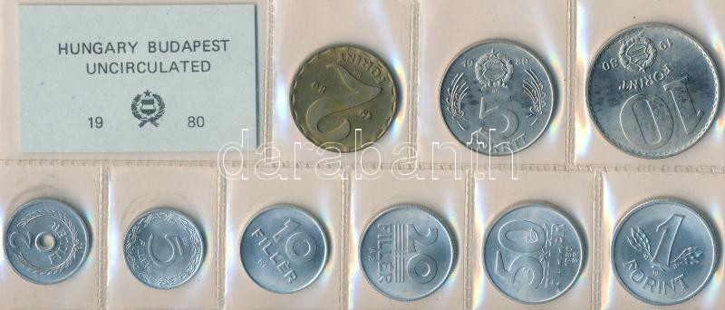 1980. 2f-10Ft 9db klf érmés forgalmi sor fóliatokban T:1 https://www.darabanth.com/de/211-Fernauktion/211.0/Numismatik/Ungarische-Munzen~600008/1980-2f-10Ft-9db-klf-ermes-forgalmi-sor-foliatokban-T1~II869526