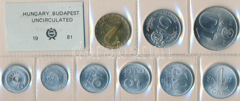 1981. 2f-10Ft 9db klf érmés forgalmi sor fóliatokban T:1 https://www.darabanth.com/de/211-Fernauktion/211.0/Numismatik/Ungarische-Munzen~600008/1981-2f-10Ft-9db-klf-ermes-forgalmi-sor-foliatokban-T1~II869525