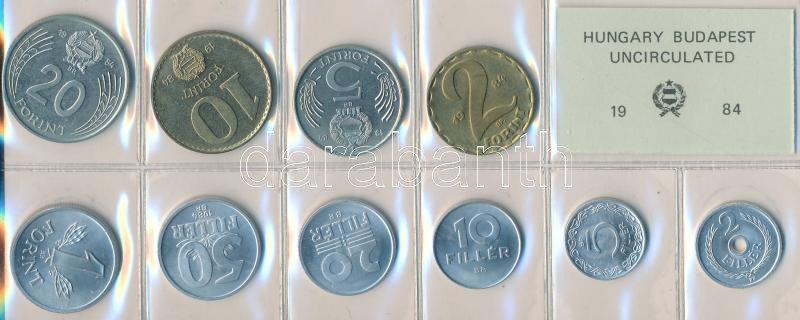 1984. 2f-20Ft 10db klf érmés forgalmi sor fóliatokban T:1 https://www.darabanth.com/de/211-Fernauktion/211.0/Numismatik/Ungarische-Munzen~600008/1984-2f-20Ft-10db-klf-ermes-forgalmi-sor-foliatokban-T1~II869520