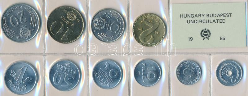 1985. 2f-20Ft 10db klf érmés forgalmi sor fóliatokban T:1 https://www.darabanth.com/de/211-Fernauktion/211.0/Numismatik/Ungarische-Munzen~600008/1985-2f-20Ft-10db-klf-ermes-forgalmi-sor-foliatokban-T1~II869519