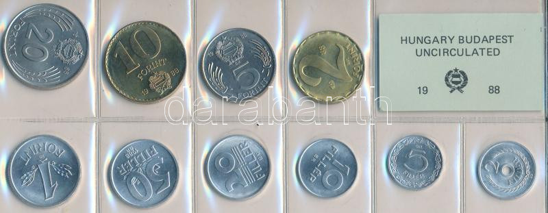 1988. 2f-20Ft 10db klf érmés forgalmi sor fóliatokban T:1 https://www.darabanth.com/de/211-Fernauktion/211.0/Numismatik/Ungarische-Munzen~600008/1988-2f-20Ft-10db-klf-ermes-forgalmi-sor-foliatokban-T1~II869514