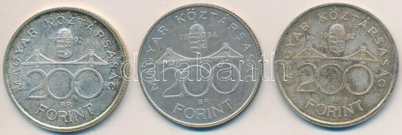 1992-1994. 200Ft Ag (3x) T:vegyes https://www.darabanth.com/de/211-Fernauktion/211.0/Numismatik/Ungarische-Munzen~600008/1992-1994-200Ft-Ag-3x-Tvegyes~II875123