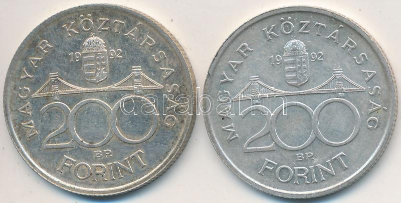 1992. 200Ft Ag "MNB" (2x) T:2 https://www.darabanth.com/de/211-Fernauktion/211.0/Numismatik/Ungarische-Munzen~600008/1992-200Ft-Ag-MNB-2x-T2~II873707
