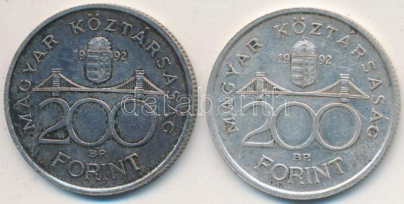 1992. 200Ft Ag "MNB" (2x) T:2 https://www.darabanth.com/de/211-Fernauktion/211.0/Numismatik/Ungarische-Munzen~600008/1992-200Ft-Ag-MNB-2x-T2~II873711
