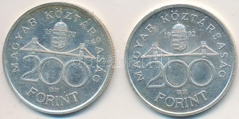 1992. 200Ft Ag "MNB" (2x) T:2 https://www.darabanth.com/de/211-Fernauktion/211.0/Numismatik/Ungarische-Munzen~600008/1992-200Ft-Ag-MNB-2x-T2~II873712