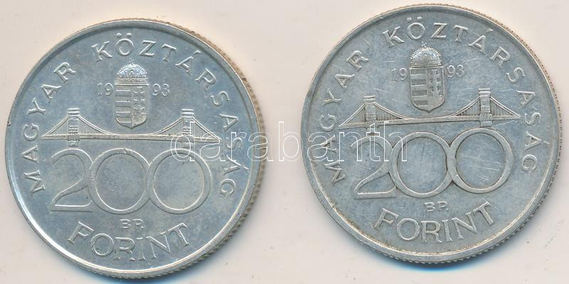 1993. 200Ft "Deák" (2x) T:2 https://www.darabanth.com/de/211-Fernauktion/211.0/Numismatik/Ungarische-Munzen~600008/1993-200Ft-Deak-2x-T2~II873648