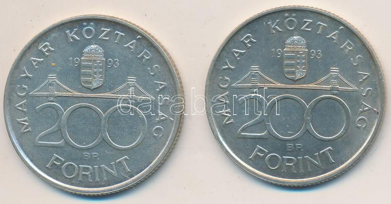 1993. 200Ft "MNB" (2x) T:2 https://www.darabanth.com/de/211-Fernauktion/211.0/Numismatik/Ungarische-Munzen~600008/1993-200Ft-MNB-2x-T2~II873220