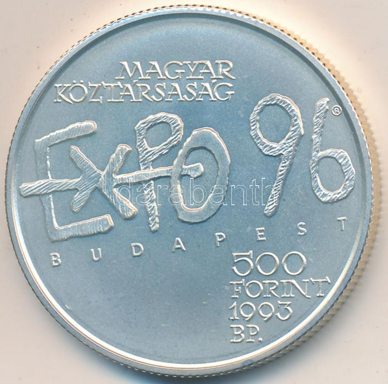 1993. 500Ft Ag "Expo 96" T:BU https://www.darabanth.com/de/211-Fernauktion/211.0/Numismatik/Ungarische-Munzen~600008/1993-500Ft-Ag-Expo-96-TBU~II872781