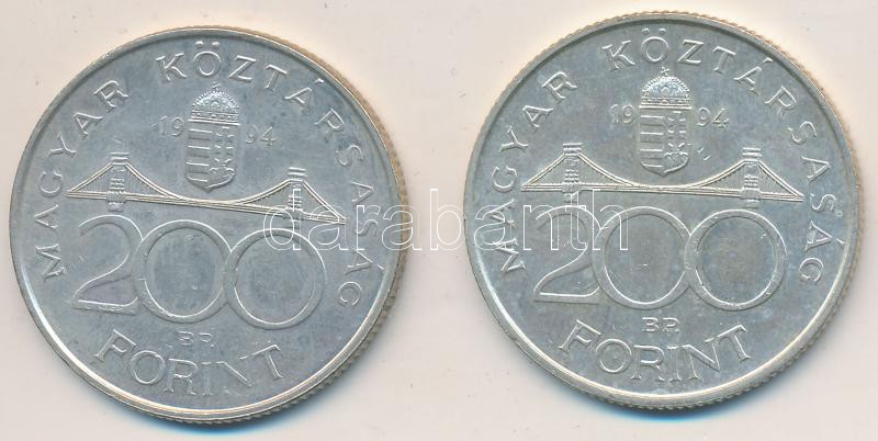 1994. 200Ft "Deák" (2x) T:2 https://www.darabanth.com/de/211-Fernauktion/211.0/Numismatik/Ungarische-Munzen~600008/1994-200Ft-Deak-2x-T2~II873222