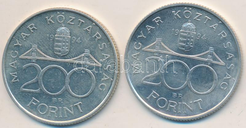 1994. 200Ft "Deák" (2x) T:2 https://www.darabanth.com/de/211-Fernauktion/211.0/Numismatik/Ungarische-Munzen~600008/1994-200Ft-Deak-2x-T2~II873646